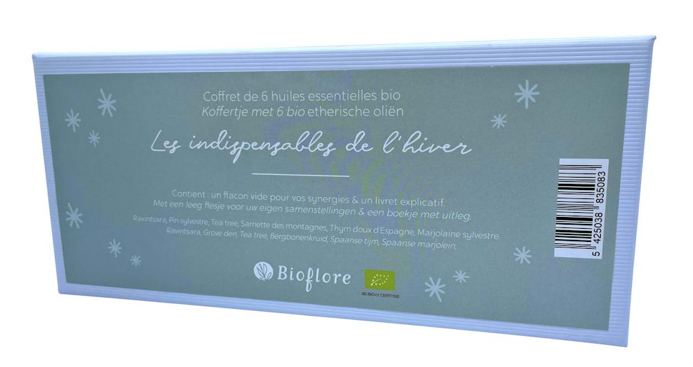 Coffret de 6 huiles essentielles bio* indispensables de l’hiver + 1 flacon vide de 10 ml + 1 notice *Contrôle Be-Bio-01 Condition.: Prix: 42,75 € Fournisseurs: Bioflore